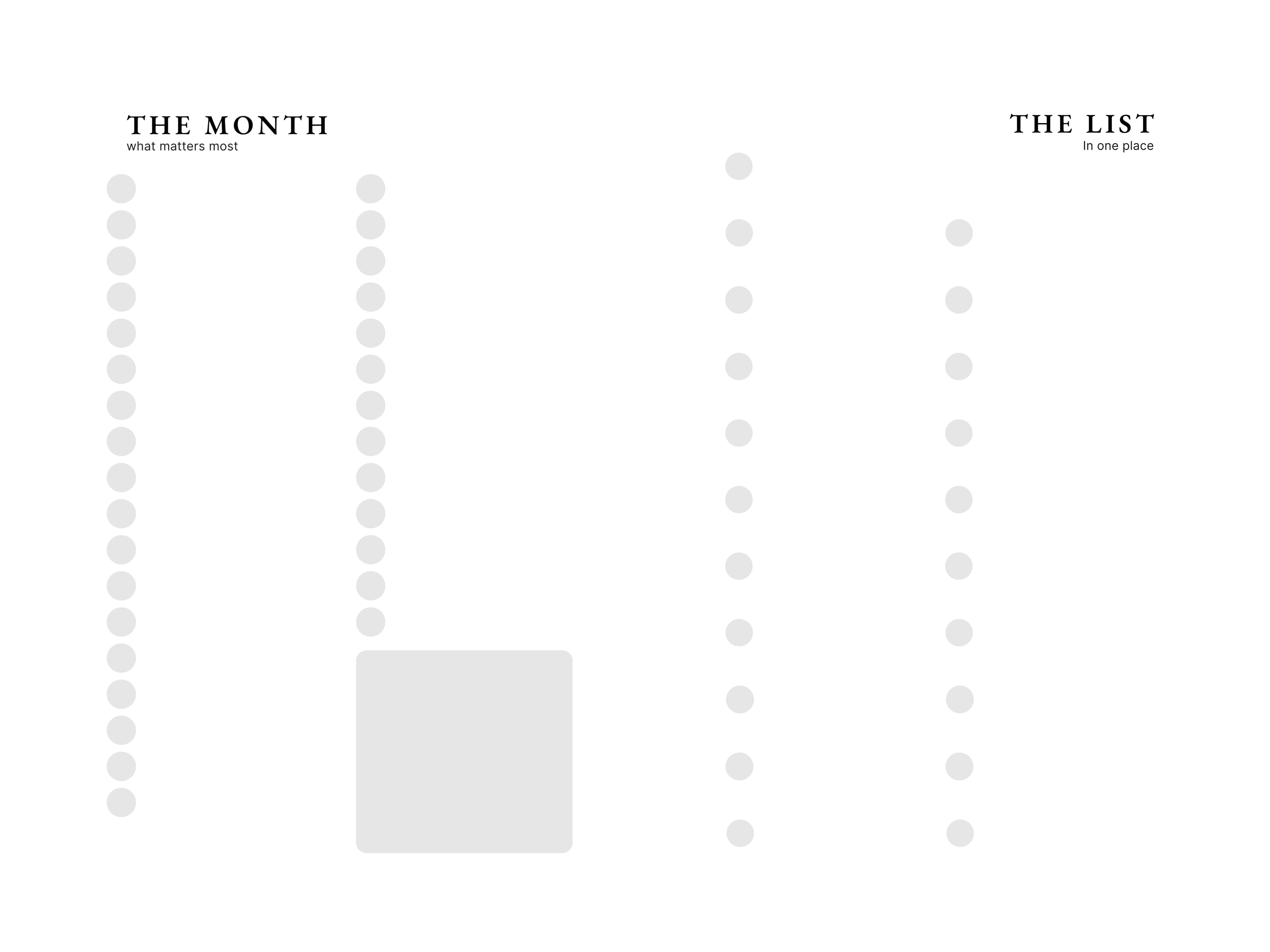 A monthly container for your brain, somewhere to catch the ideas, appointments, dread, genius, rage, shopping lists and passing ambitions before they evaporate.